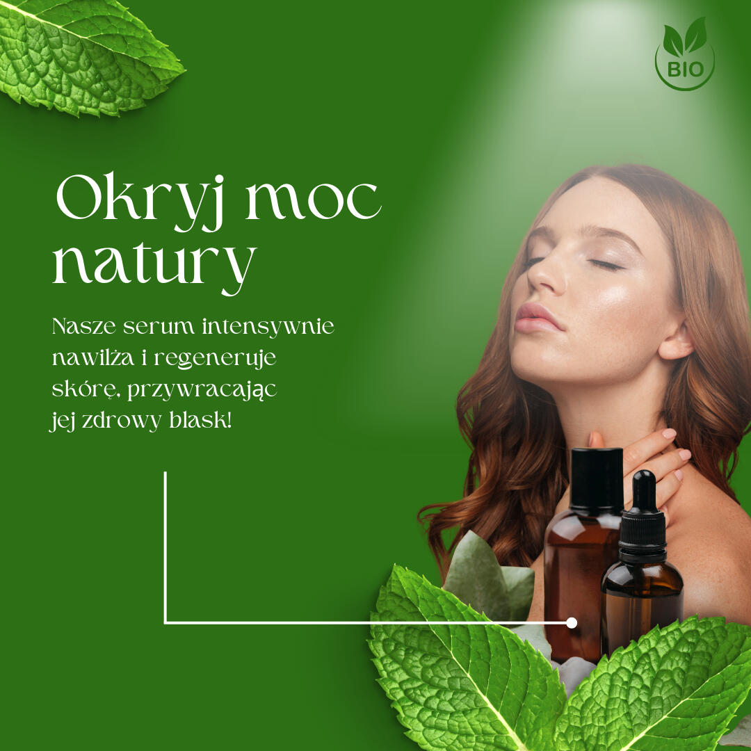 Zaczęliśmy od przyjrzenia się, jak współczesne marki komunikują swoje wartości. Wybraliśmy minimalistyczną estetykę z dominacją zieleni, nawiązującą do natury, oraz subtelne akcenty graficzne, które dodają nowoczesności. Zdjęcia produktów zostały otoczone detalami – listkami, kropelkami czy lekkimi teksturami – które nawiązują do składników aktywnych kosmetyków. Dodaliśmy chwytliwe hasła w stylu „Odkryj naturalną moc piękna” oraz „Twoja skóra, twoja siła”, by przyciągnąć uwagę i zbudować więź z odbiorcą.
